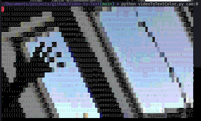 videoToTextColor.py! Usecam:[webcam_index_here]as the input file. (cv2.VideoCapture()also takes integers, which correspond to webcam indexes)videoToTextColor.py, importingconvert_img()fromimgToTextColor.pypip install -r requirements.txt)As a side note, this whole idea with compression based on Markov chains and Huffman trees is genius. The video was awesome too, as always :)