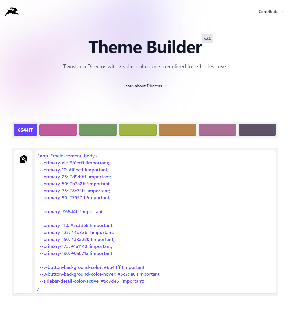 Customizing the Directus app with a specific color can be a hassle due to the need to convert the color to a CSS object. To simplify this process, a web application has been built that offers an easier way to apply a custom color using a color converter. The application eliminates the need to go through the tedious process of converting a single color and provides a more efficient solution. Try it out by clicking on the link below.