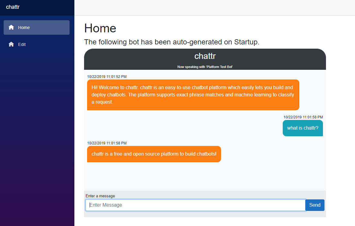 chattr is an easy-to-use chatbot service platform which enables everyone to build conversational chatbots! chattr is powered by ML.NET and Blazor (Razor Components) and is fully free and open-source with no licensing or usage limits.