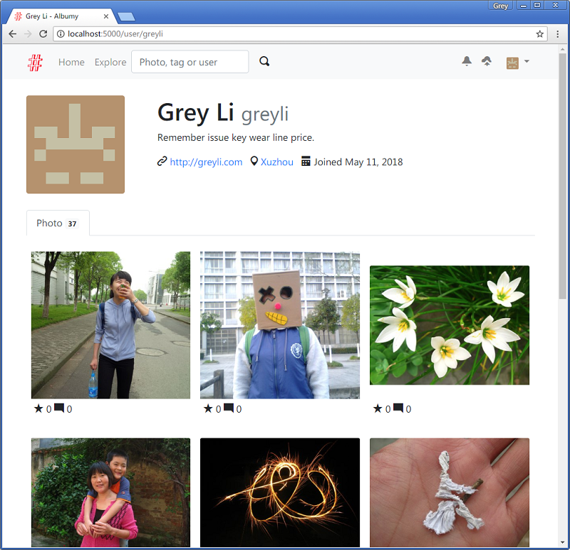 这个仓库包含《Flask Web开发实战》第9章的示例程序Albumy的源码。