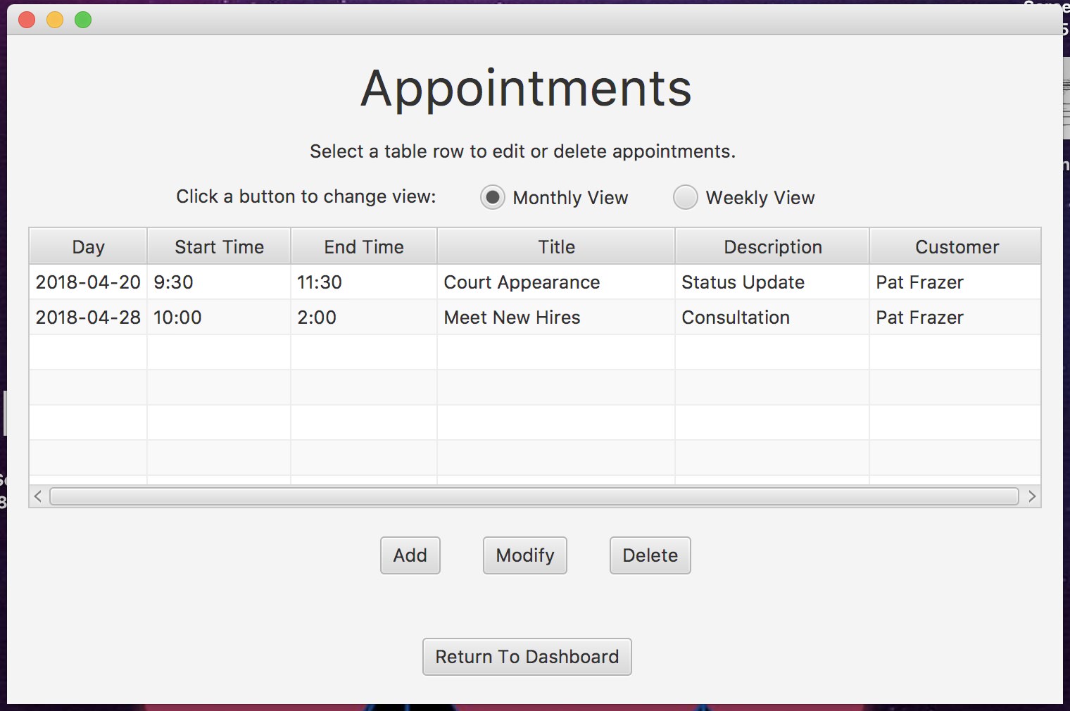 This Scheduling Application allows the users to manage multiple schedules, appointments, alerts, and reports, which are automatically updated to supported several timezones, in ways that satisfy the user requirements.