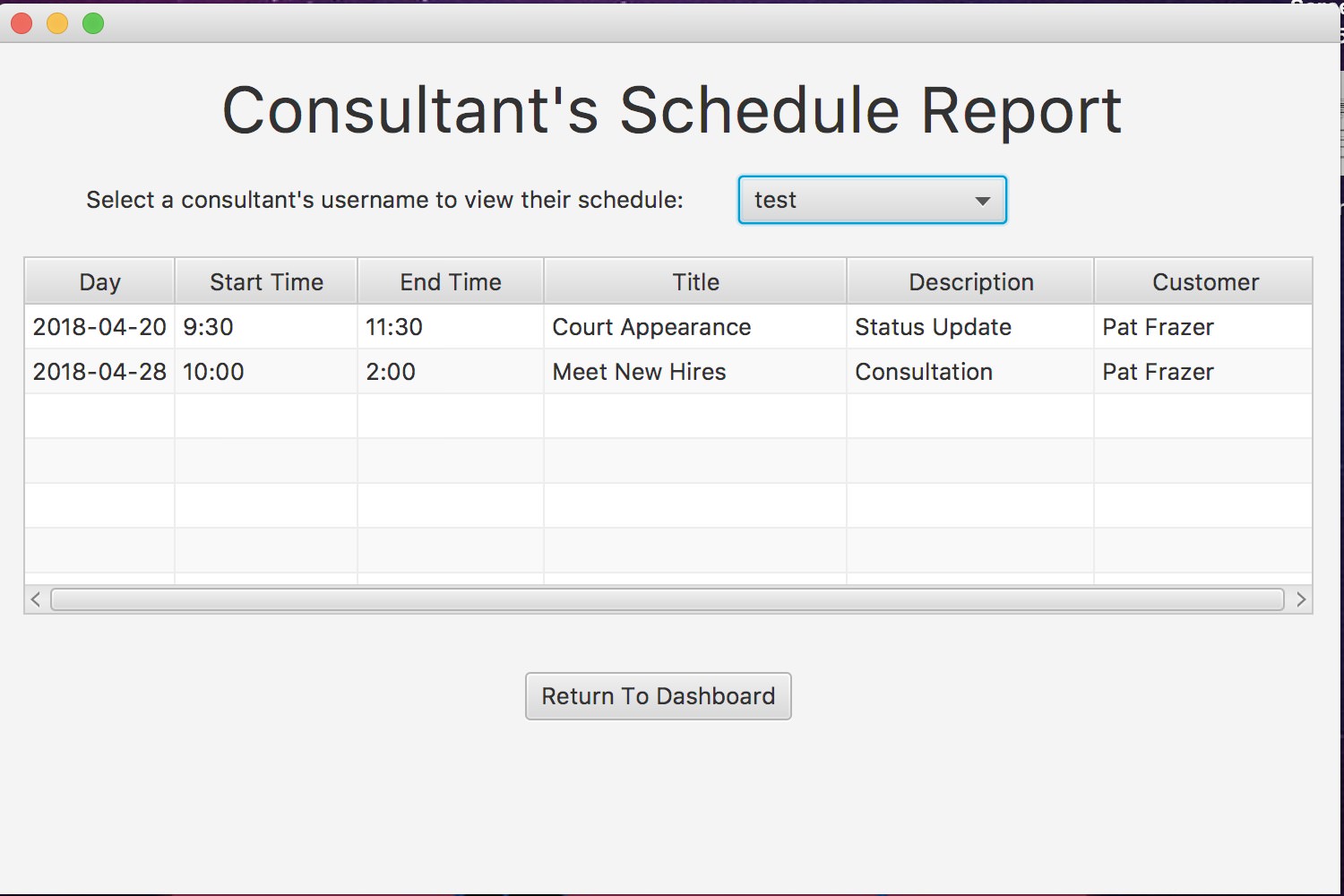 The Consultant's Schedule Repot: