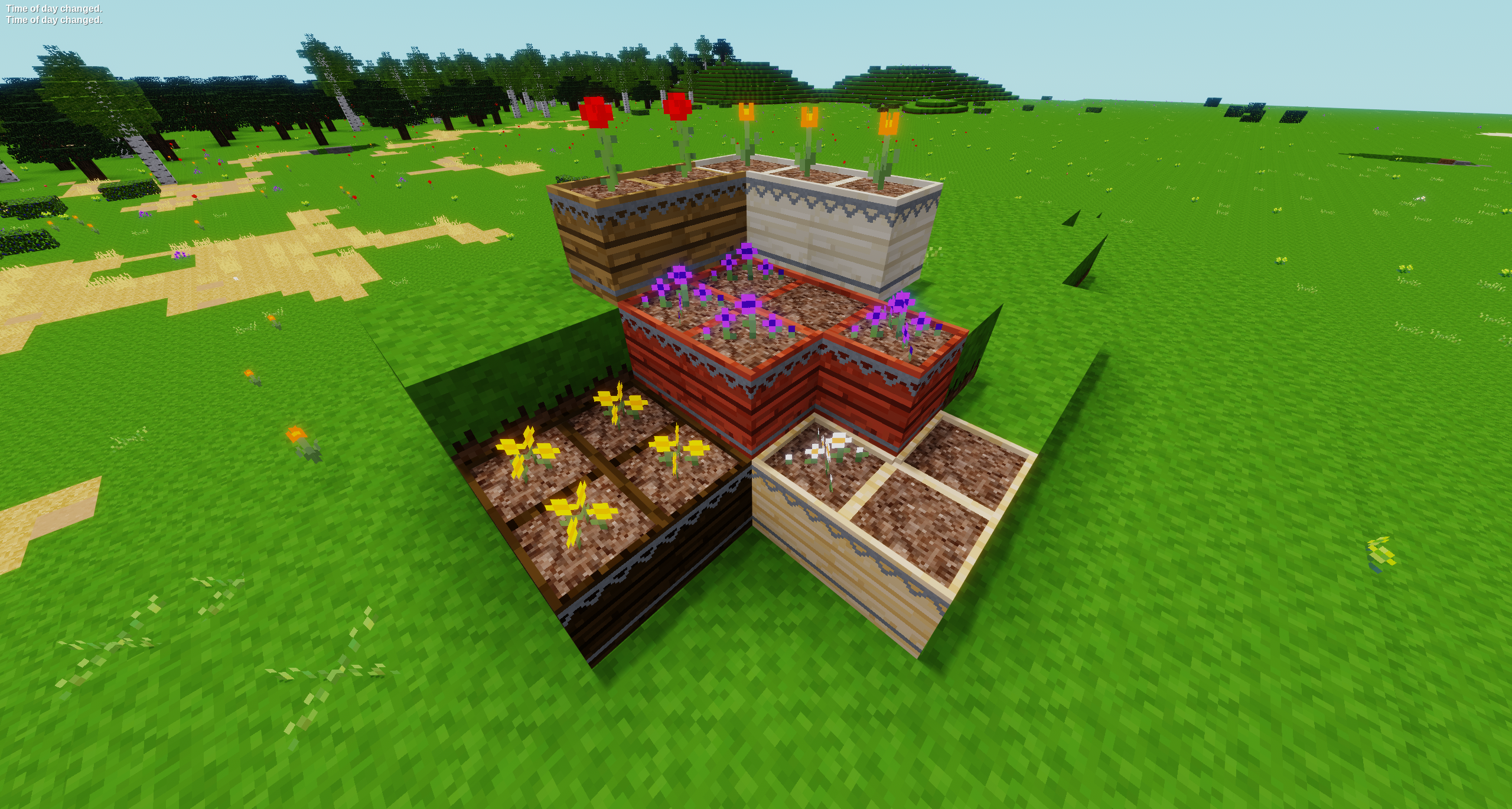 Flower beds have a random time between checks, and random probability of success, to see if flowers grow in empty flowerbeds. The times and probability can be controlled with the [Settings] listed below.