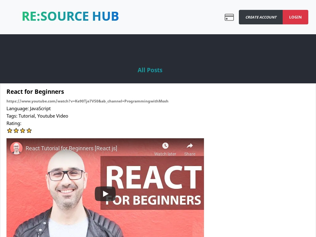 - This repo contains the React Frontend for an application to share resources for web developers.