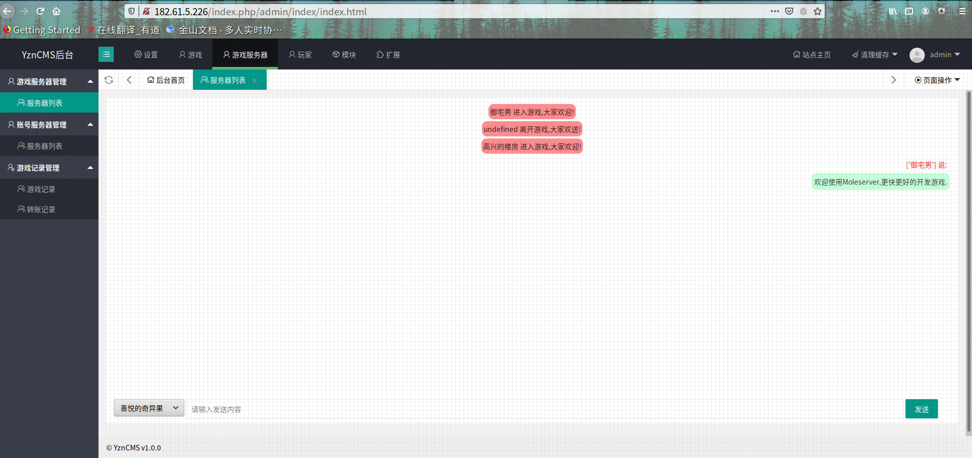 网站后台管理功能,已经实现对玩家,游戏,服务器的管理和监控
