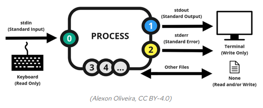 Most Linux commands read input, such as a filename, and write output to screen. By default, your keyboard is represented in linux by the standard input (stdin) device, and the screen or a particular terminal window is represented by the standard output (stdout) device. We already said that in linux everything is a file, and indeed, you can find the stdin and stdout files in the /dev directory.