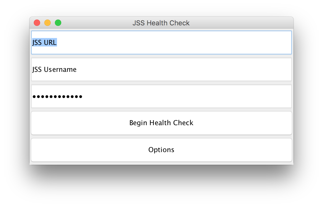 The JSS Health Check Utility is a lightweight tool for JSS administrators to run inside of their environments to perform automated health checks. It performs checks for things that commonly appear during scheduled health checks, like having too little RAM, expiring items, bad scripts, etc. Simply provide the tool the JSS URL, Username, and Password. The tool will perform API GETs to the JSS, get the JSS Summary, as well as run some commands on the system, and then display a report to the end user. Nothing is ever edited, only read. The goal of this tool is to help administrators identify issues with their environment before the issues arise. This tool was written in Java, to be cross platform and available to as many as possible. This tool is provided "AS IS", therefore no support from JAMF Software is guaranteed.