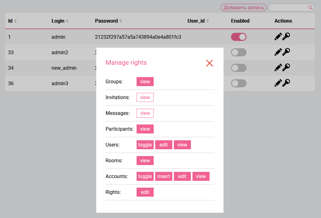 Admin panel for bot-helper service on vue.js