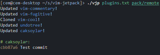 $ mkdir -p ~/.vim/pack/remoteCall vjp with plugins file and packages folder as arguments: