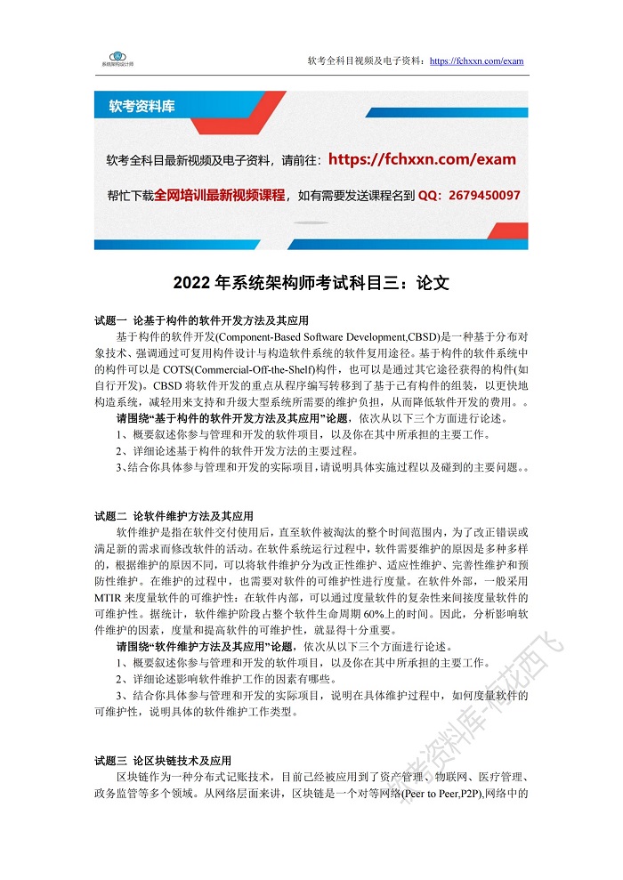 - 更新2022年系统架构设计师综合知识、案例分析真题解析视频。