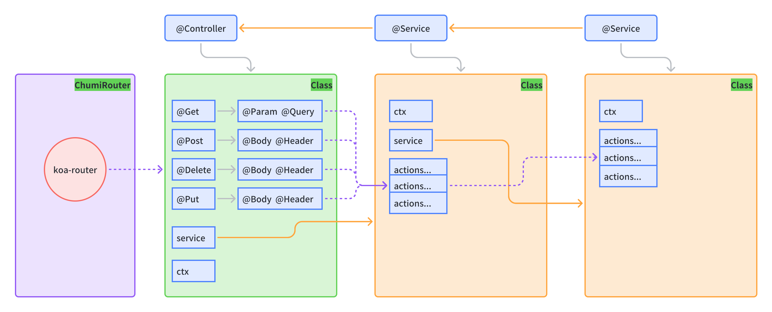 🌈A middleware framework based on Koa, providing annotations for Controller, Route, Parameter, Service, and other functionalities at runtime.