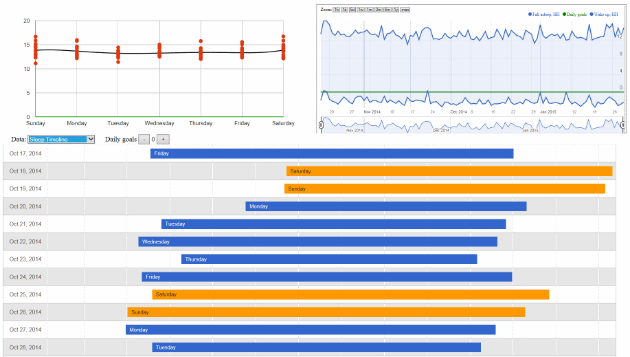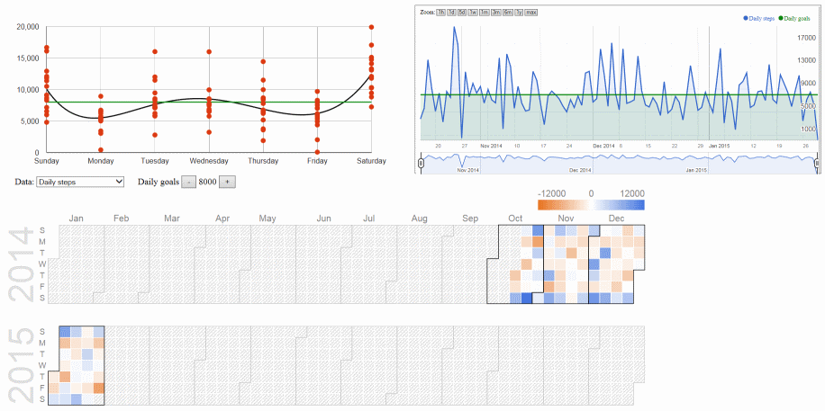 Y,mi_data.htmlwill be opened automatically to show charts for your Mi usage. - HTML reports are using Google Charts framework and Google TOS does not allow storing their scripts offline along with the application, therefore you will need to have working internet access for reports to work. Your data is not being sent to Google, the internet connection is only used to download latest version of Google Charts javascripts.