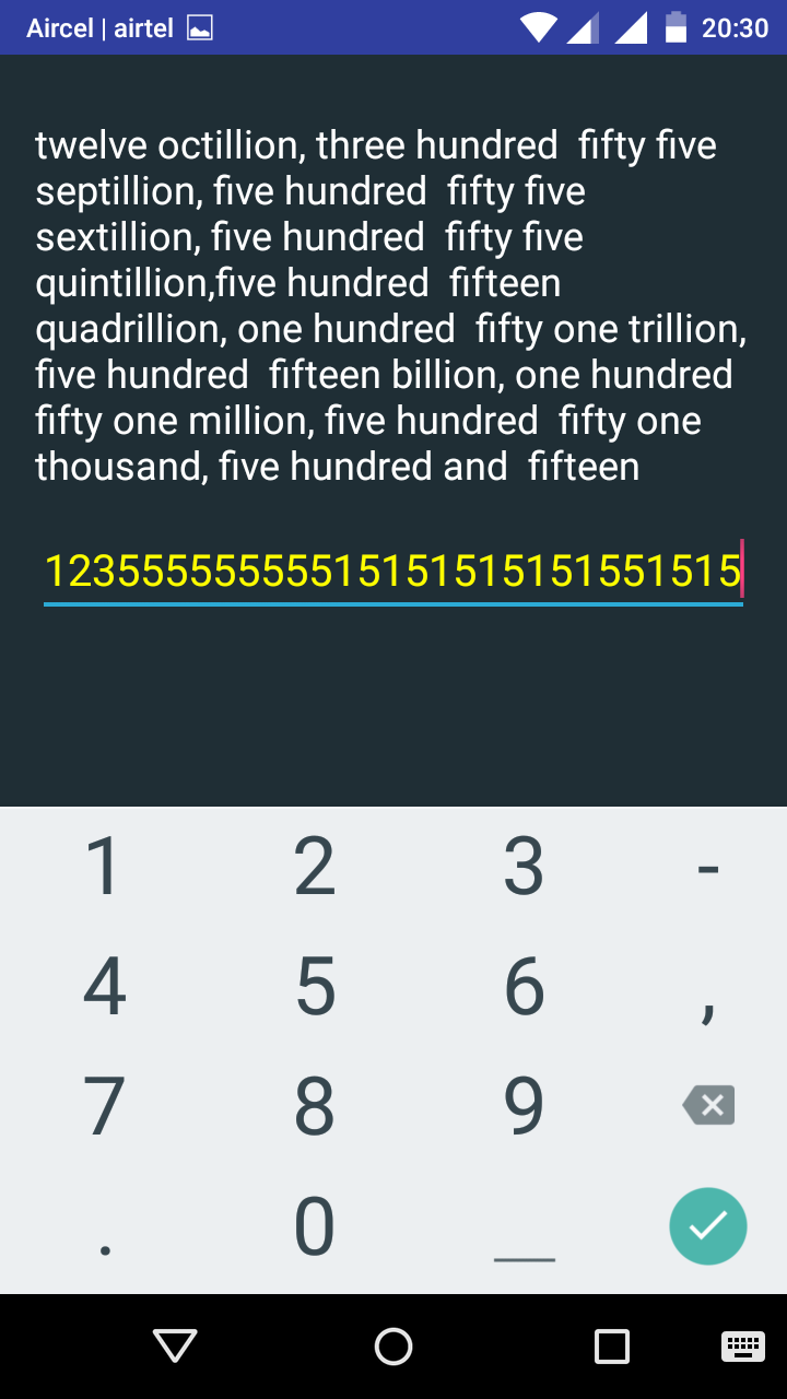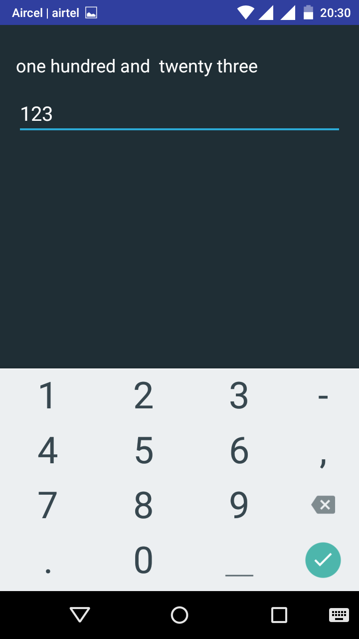 nothing fancy its a small test App which converts numbers into words for example if you enter 123 it'll say one hundered and twenty three