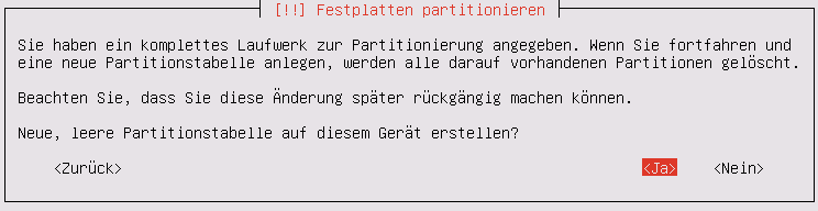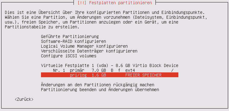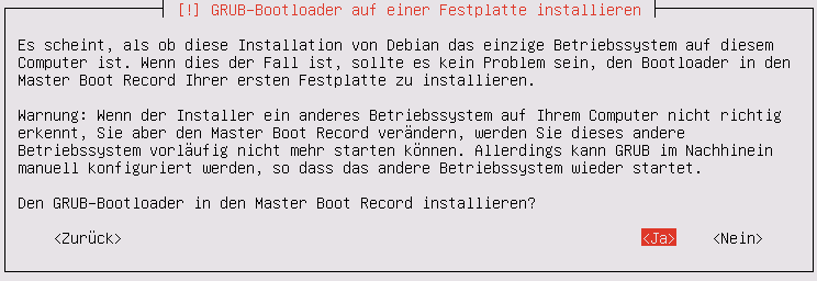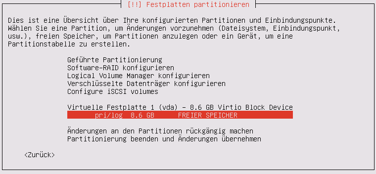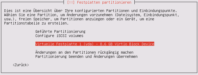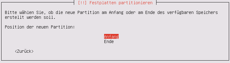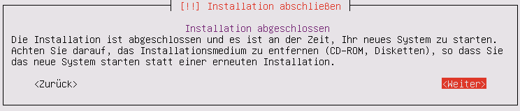 Hinweis: Wenn das System später läuft, nicht vergessen, den Starttyp "at boot time" zu stellen und das CD-ROM-Laufwerk entfernen.
