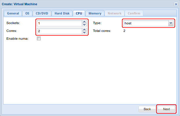 Im Reiter 'CPU' einen Prozessorkern zuweisen. Type "host" (mehr Performance, weniger Portabilität).