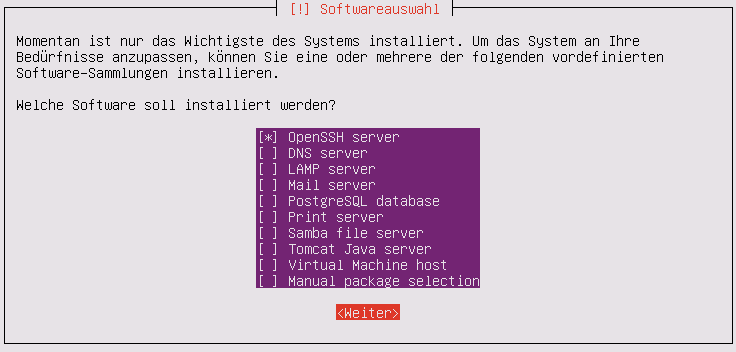 OpenSSH Server auswählen (Leertaste benutzen) und weiter