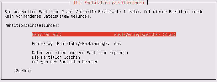 Benutzen als 'Auslagerungsspeicher (SWAP)'