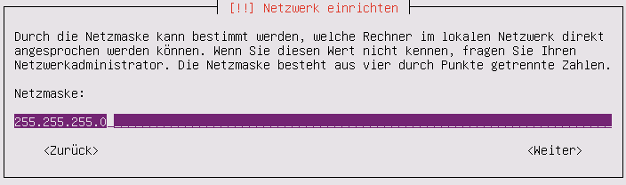 Die Subnetzmaske von 255.255.255.0 bleibt in der Regel so