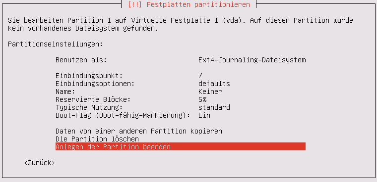 Bootflag auf 'ein' setzen und 'Anlegen beenden'