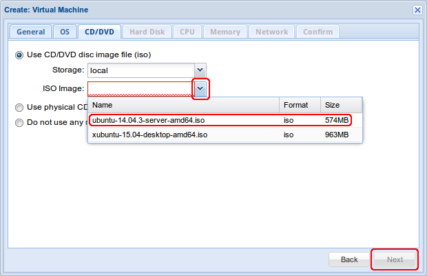 Im Reiter 'CD/DVD' das ISO Image auswählen.