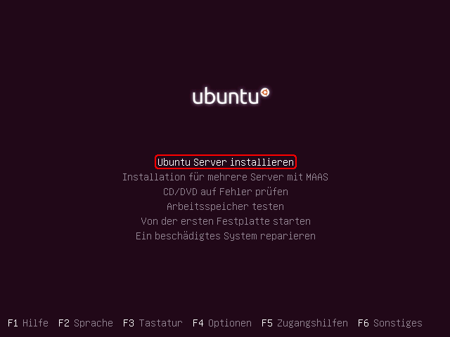 Deutsch als Sprache auswählen und nun Ubuntu Server installieren