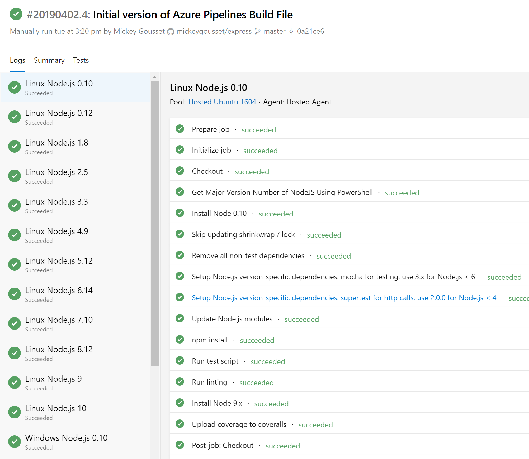 Setting Up CI With Azure Pipelines#3924mickeygousset wants to merge 1 commit intoexpressjs:masterfrom mickeygousset:master