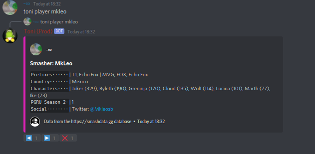 Hi, I'm SSBToni, a Discord bot for the competitive Super Smash Bros. community (but mainly focused on Ultimate right now).