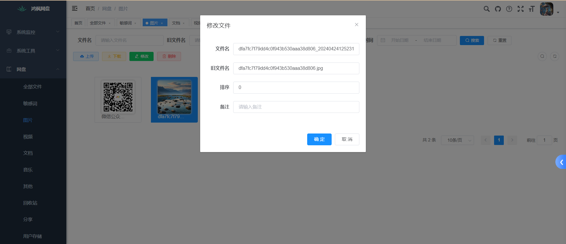 在线网盘系统,使用了DFA算法,实现了文件夹的创建与修改,多级目录,很正常的文件夹一样,支持所有文件上传, 并按文件类型分类,支持文件删除,回收站管理,恢复与彻底删除,支持公开分享和私密分享可自动生成提取码, 设置过期时间或永久有效,支持图片,视频文件的预览,支持文件夹及文件的批量压缩下载,未来计划支持更多种类 的文件预览,以及文件夹和文件的移动,层级面包屑的跳转,文件夹及多文件的批量上传分片上传