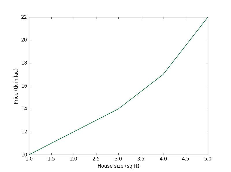 এবার আপনাকে যদি বলি, বাড়ির আকার যদি 6 sq ft হয় তাহলে প্রাইস কত হবে? এবার আপনি বেশ ঝামেলায় পড়ে যাবেন, কারণ প্রতি স্কয়ার ফিট আকার বৃদ্ধির সাথে বর্ধিত দাম সুষম নয়। আগেরটা বিয়োগ দিয়ে পার্থক্য বের করে সেটার সাথে পার্থক্য যোগ করে পরের প্রাইস পেয়ে যাবেন, সমস্যাটা এত সহজ নয়। কারণ সাথে আবার যুক্ত হয়েছে No of rooms।