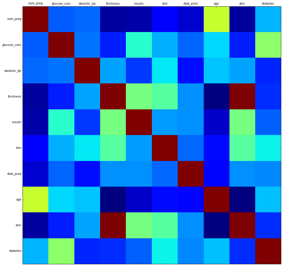 ইচ্ছা করলে এখানে plt.matshow(correlation) ব্যবহার করেও হিটম্যাপ জেনারেট করা যেত, কিন্তু তাতে আমি ইচ্ছামত আকারের গ্রাফ জেনারেট করতে পারতাম না, তাই প্লটকে সাবপ্লটে নিয়ে সাইজ অ্যাসাইন করে ইচ্ছামত আকারের সুবিধাজনক প্লট জেনারেট করা যাচ্ছে।