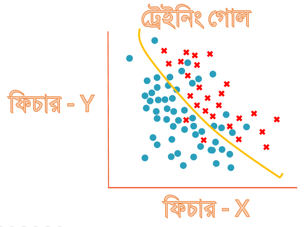 এই ট্রেইনিং ডেটা ব্যবহার করে মডেলকে ট্রেইন করে আমরা ডিসিশন বাউন্ডারি তৈরি করিয়ে নিতে পারি। আপাতত এটাই হচ্ছে আমার ট্রেইনিং ডেটা ব্যবহারের উদ্দেশ্য।