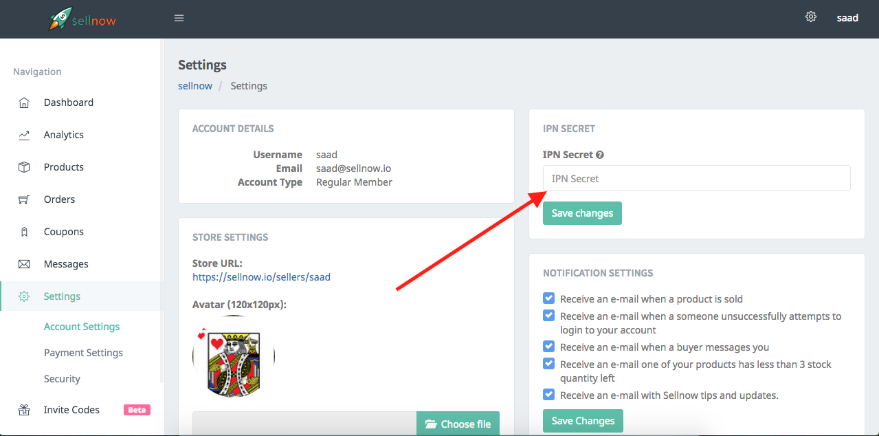 - In order to receive instant payment notifications, you must first add an IPN secret by visiting the account settings page which can be found here.