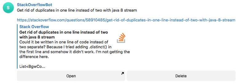 └── bot.jarSites that will be queried for the new questions. Unfortunately, Stack Exchange API doesn't allow for specifying multiple sites