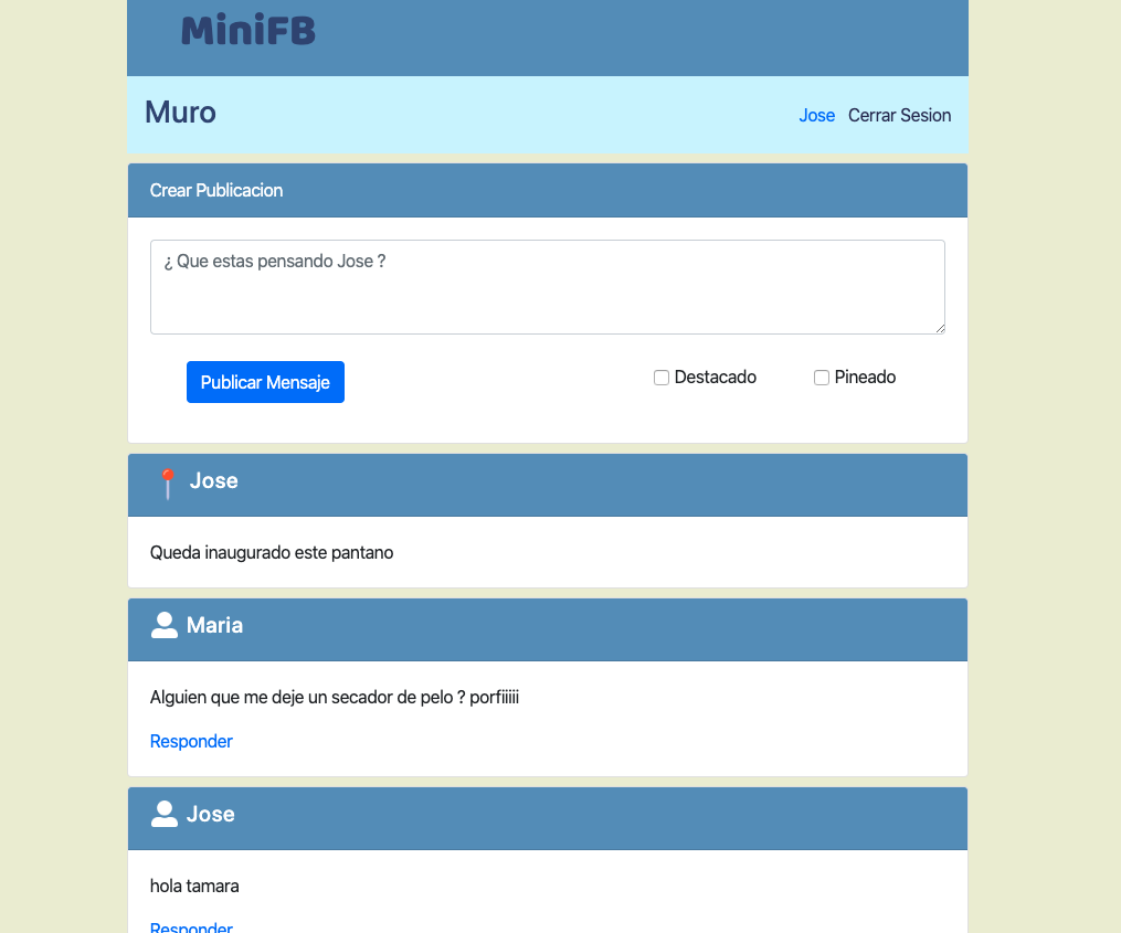 - Paginación del muro: cada 20 mensajes, nueva página. Botones de siguiente página, etc.