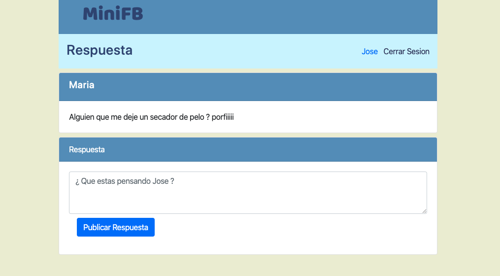 Completar el esquema de inicio de sesión con acceso a BD (la del minifb) y con cookies.