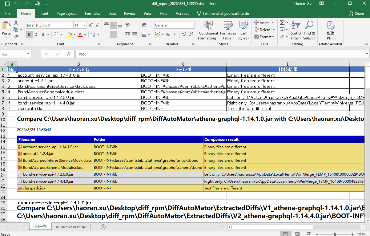 - WinMerge 对比: 使用 WinMerge 生成两个 JAR 文件的 HTML 差异报告