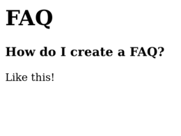 <h3 id="how-do-i-create-a-faq">How do I create a FAQ?</h3><p>Like this!</p>