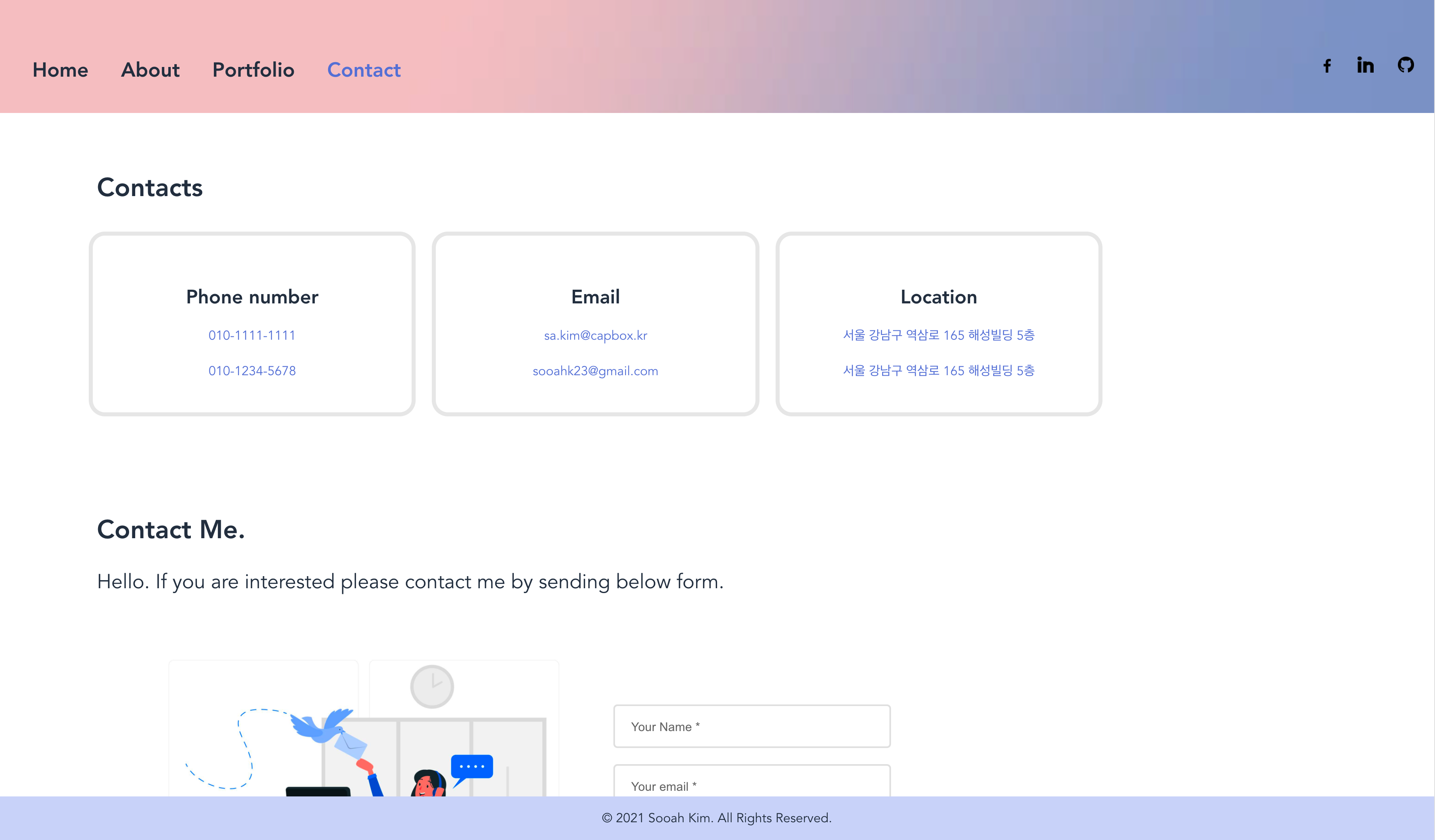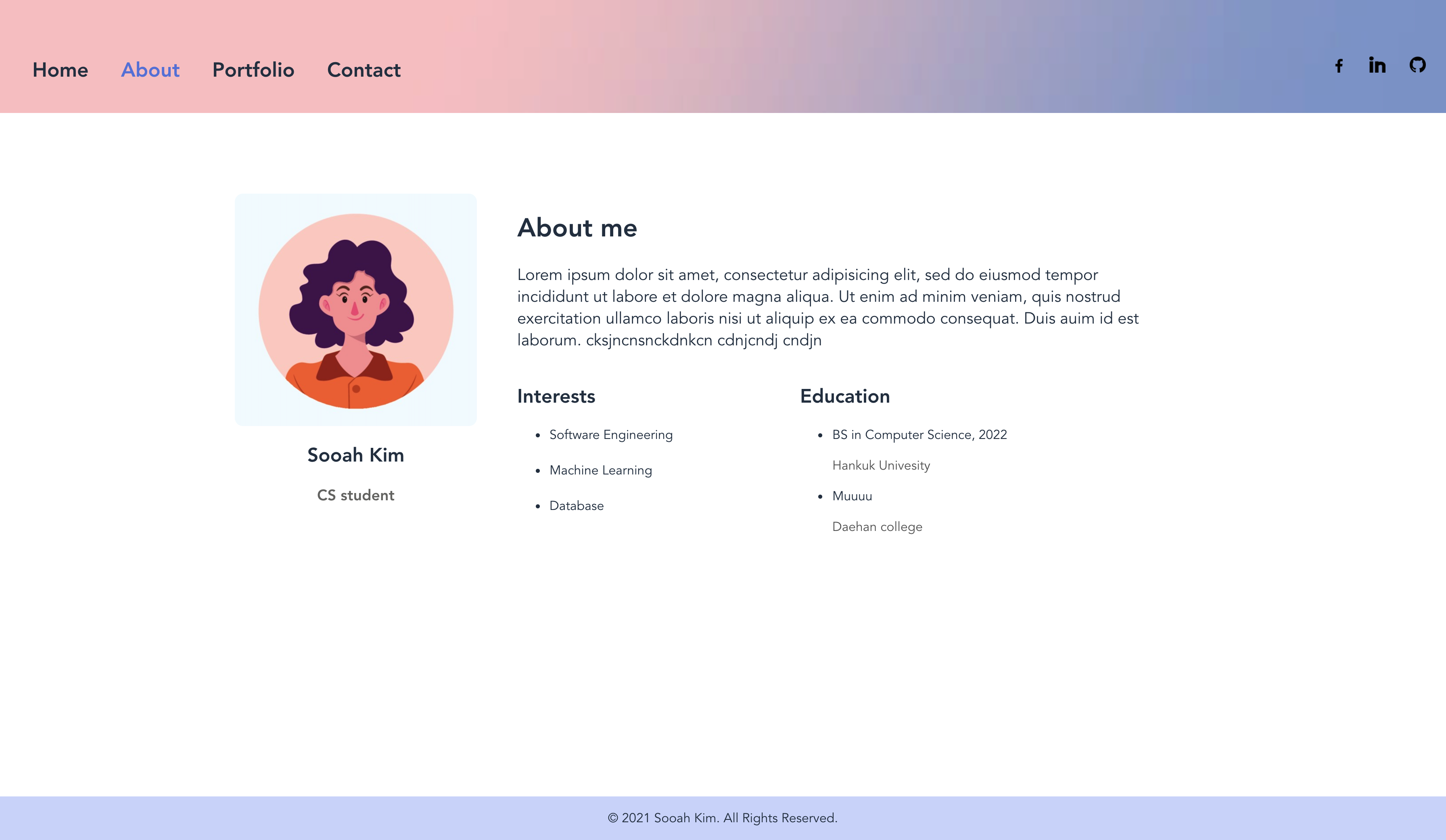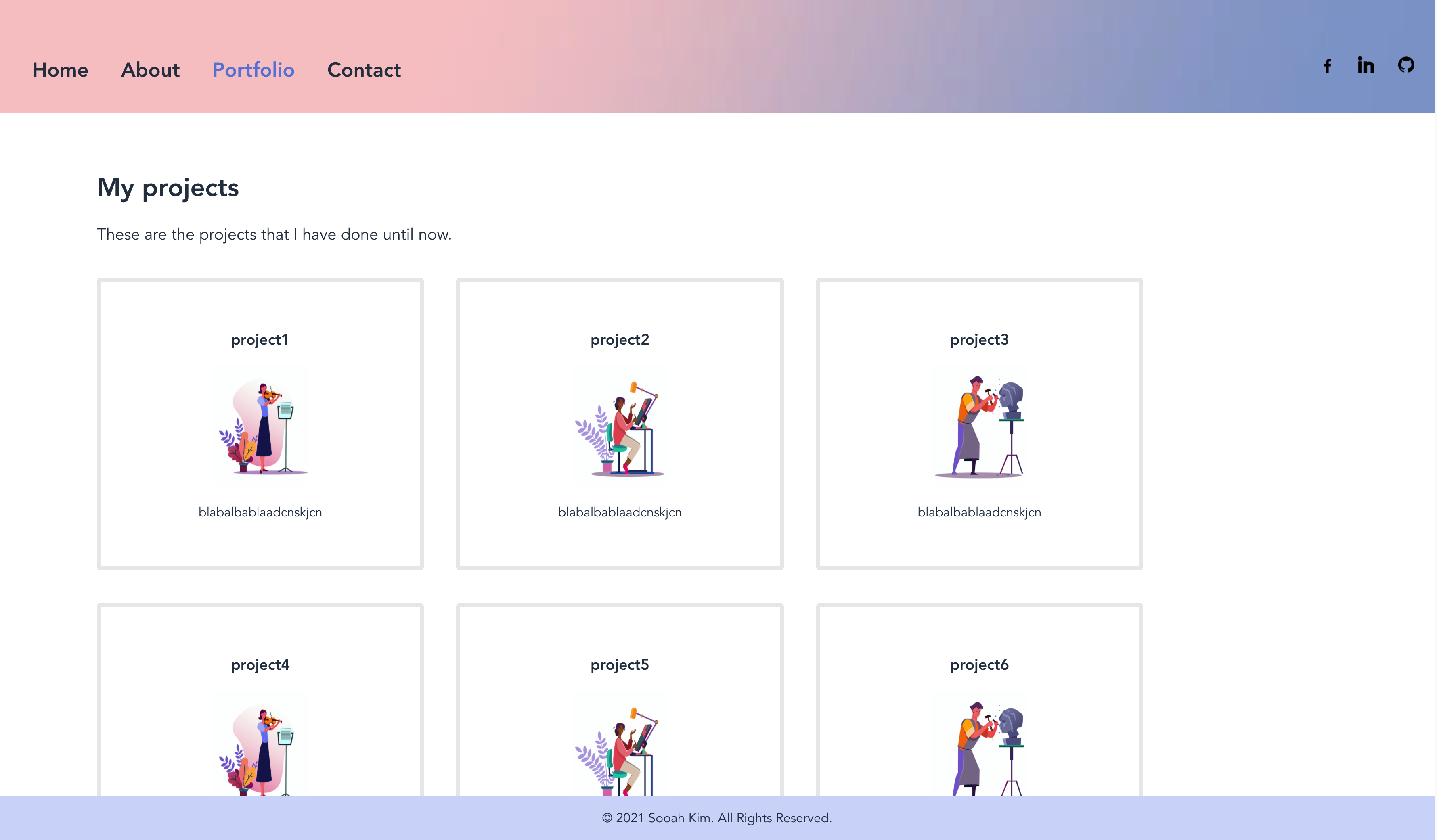 This is static portfolio site with Vue.js. This is a template so I didn't put real information in it. If you like this, you can put your information and make your own portfolio! I made this to practice how to use Vue.js.