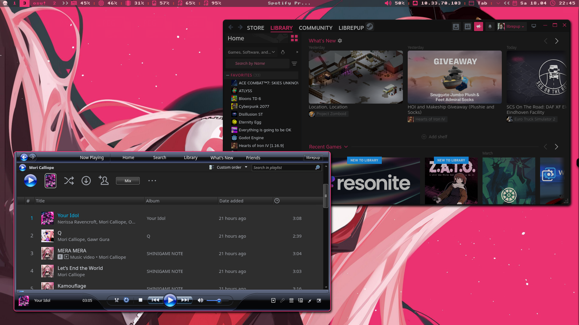 - Steam Installed (with Proton-GE, and Millenium Themes)