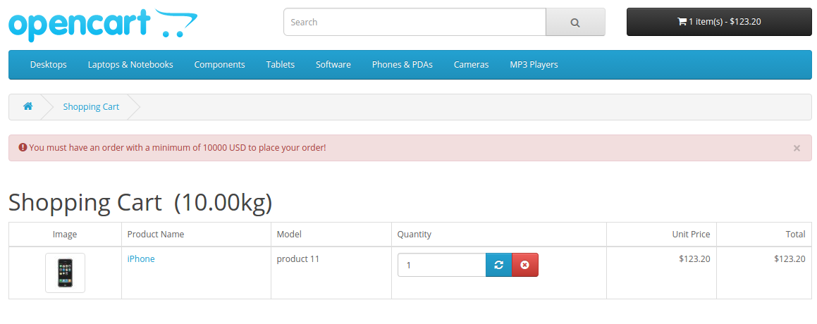 Simple Minimum Order Amount plugin for Opencart 2.3/3.0