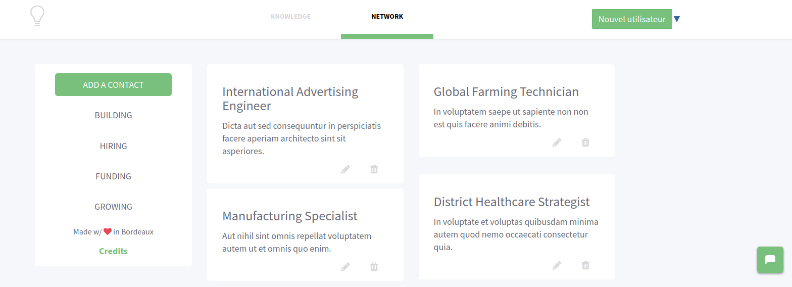 Go here and login as entrepreneur@test.fr with the password test. 😄