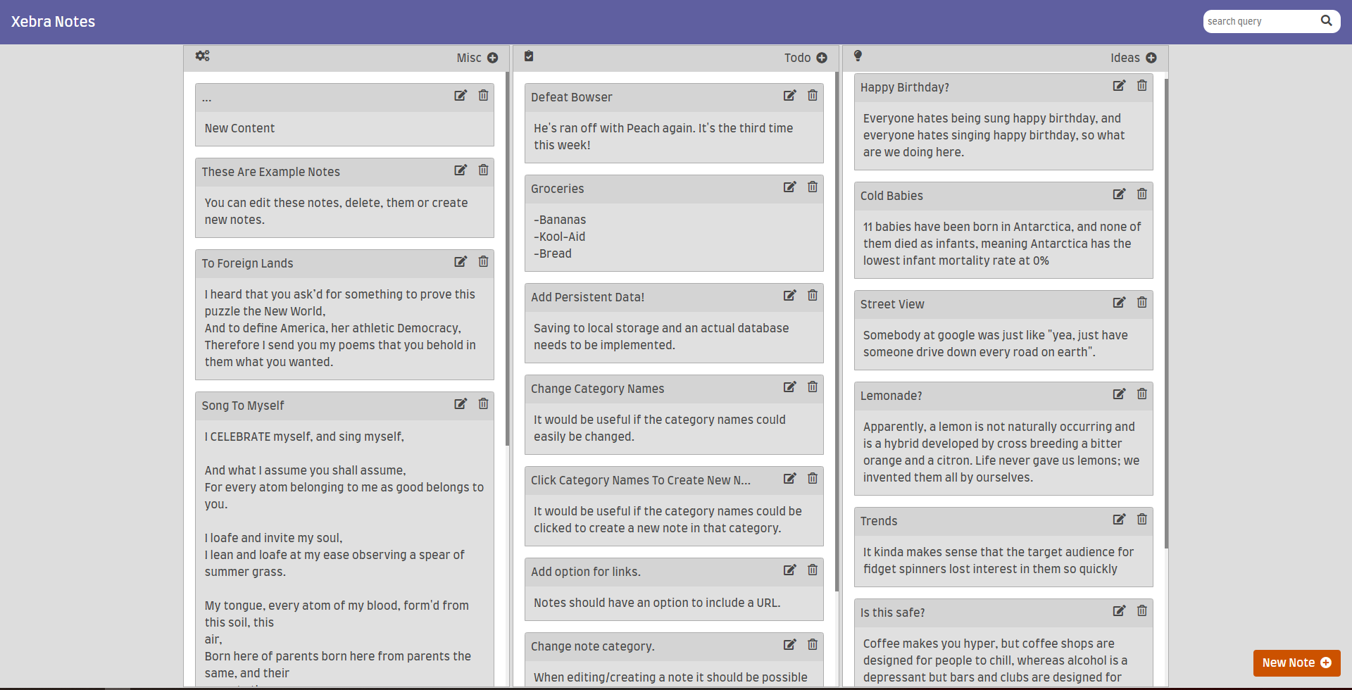 A simple note taking application. Similar to Google Keep but with some Kaban-like features.