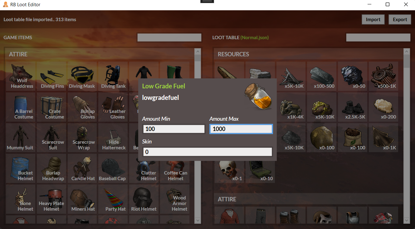 UI Loot Tables Editor for Raidable Bases plugin by Nivex.