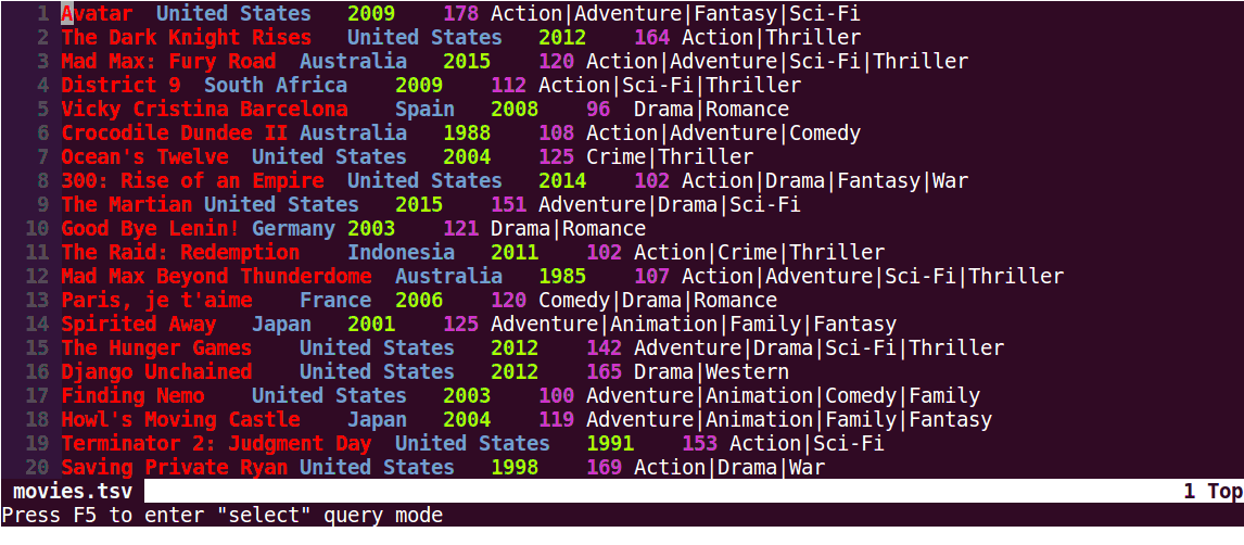 Rainbow CSV comes with built-in lightweight RBQL SQL-like query engine.
