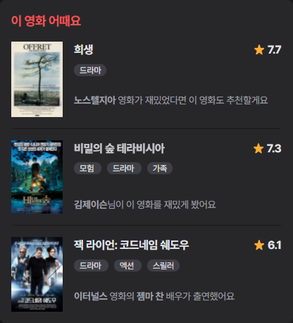 - 사이드바에 영화 추천 서비스 제공