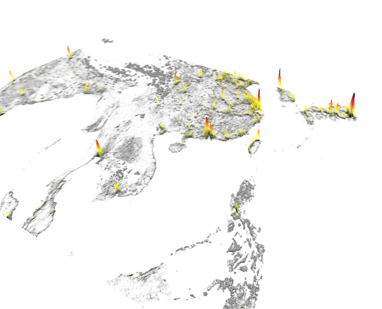 Terrain-like heatmap data viz component for AFrame. Provide your data as an greyscale image, then choose a palette, opacity settings, and blur radius.