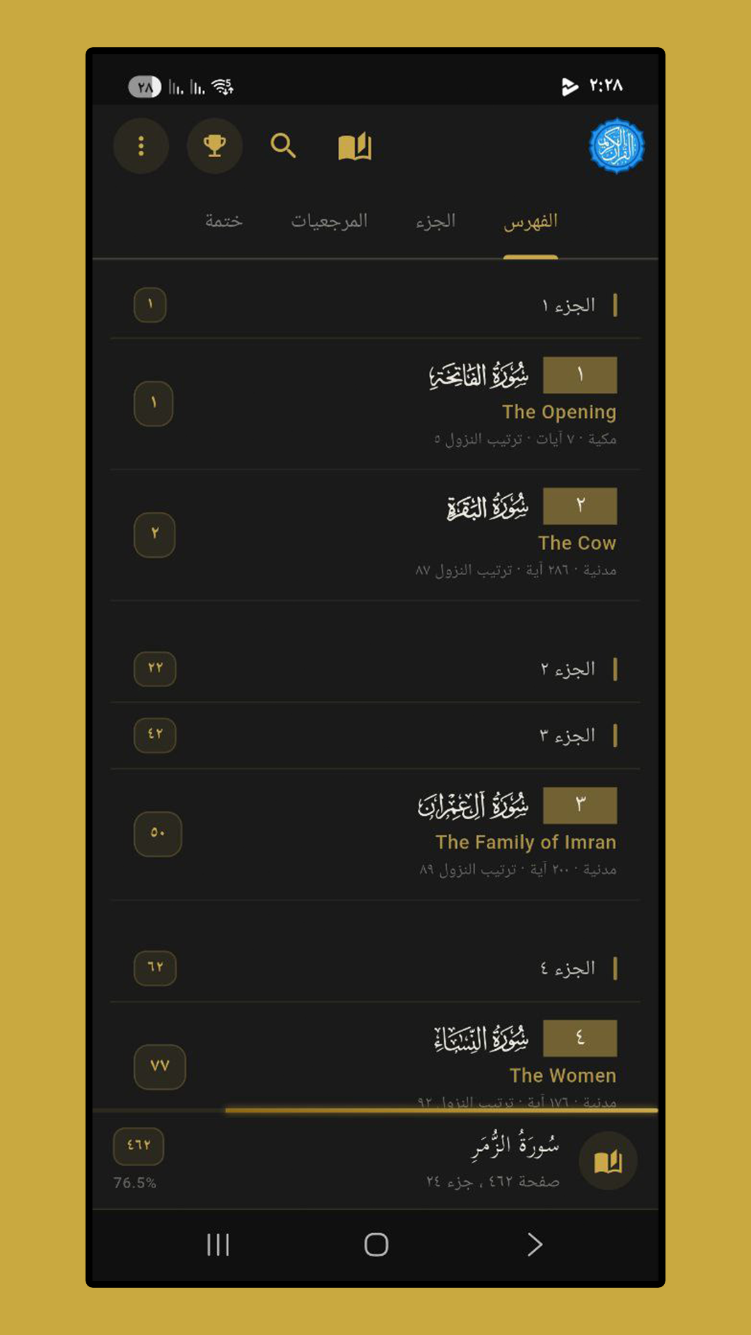 | ✔ | تحميل صفحات المصحف والقراءة أوفلاين |