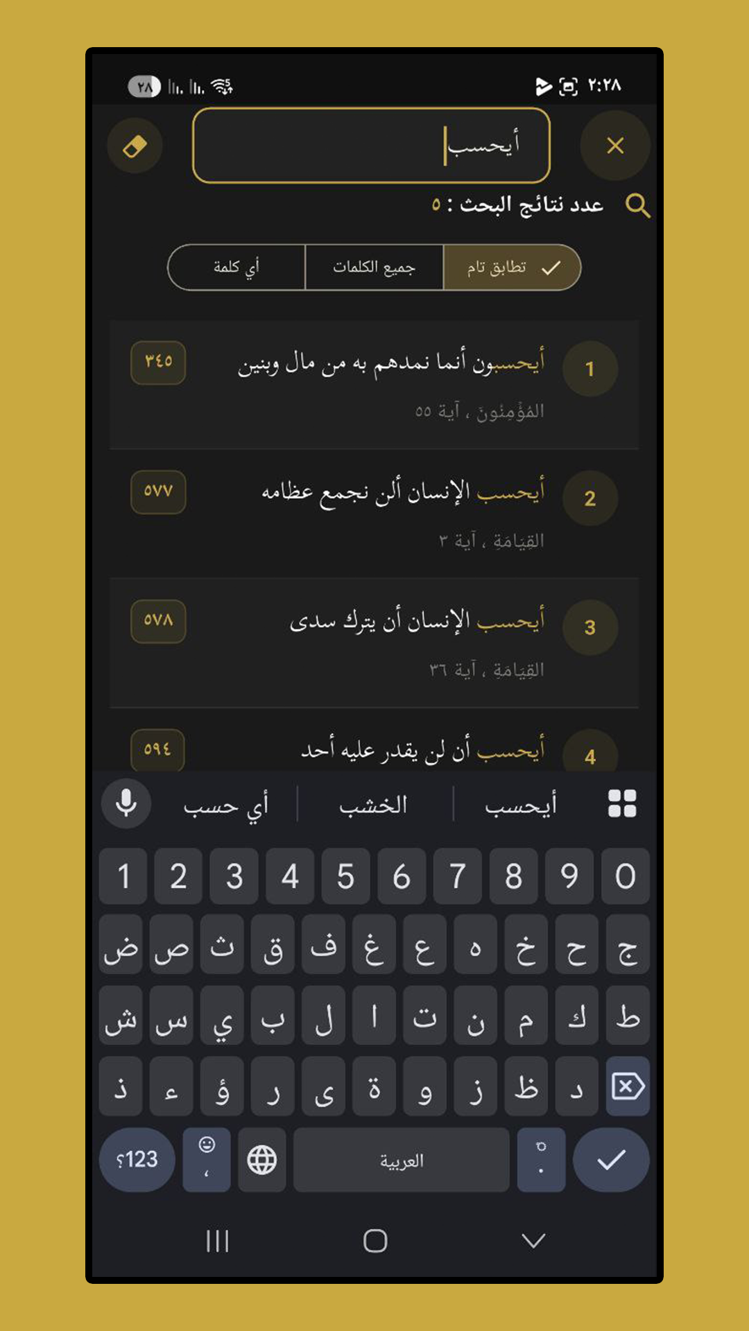| ✔ | البحث عن الآيات بدون اتصال |