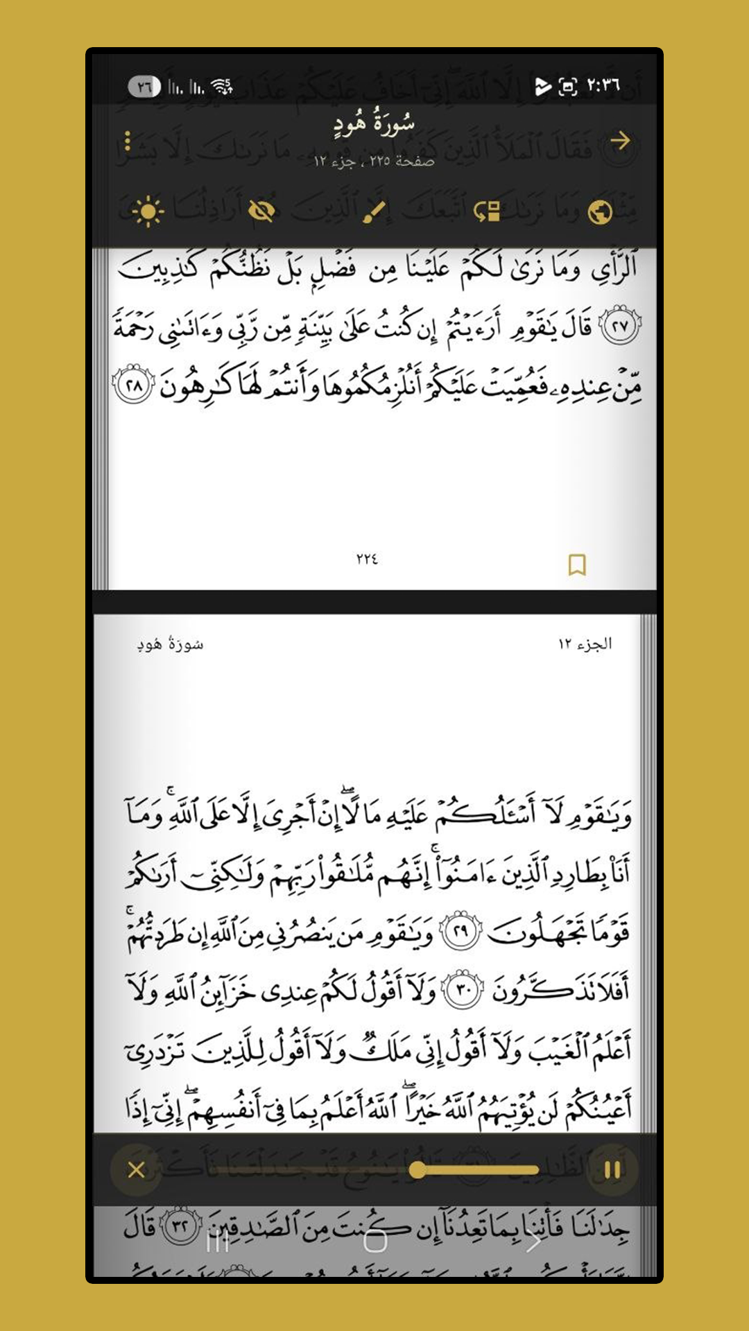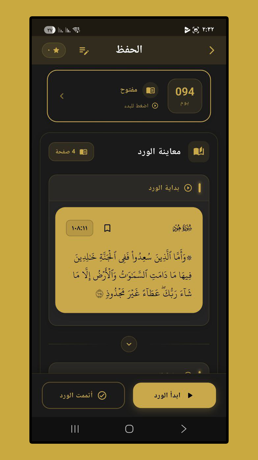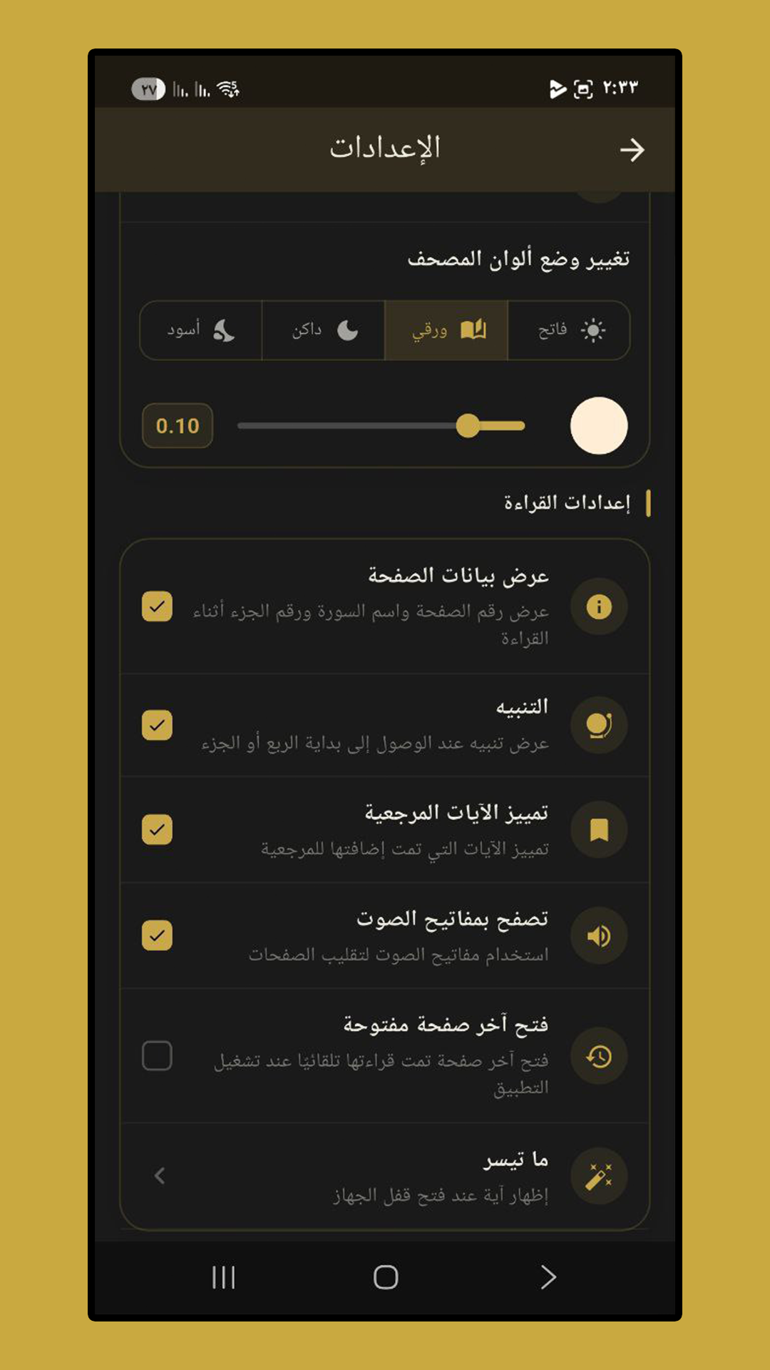 | ✔ | وضعيات قراءة لصفحات المصحف |