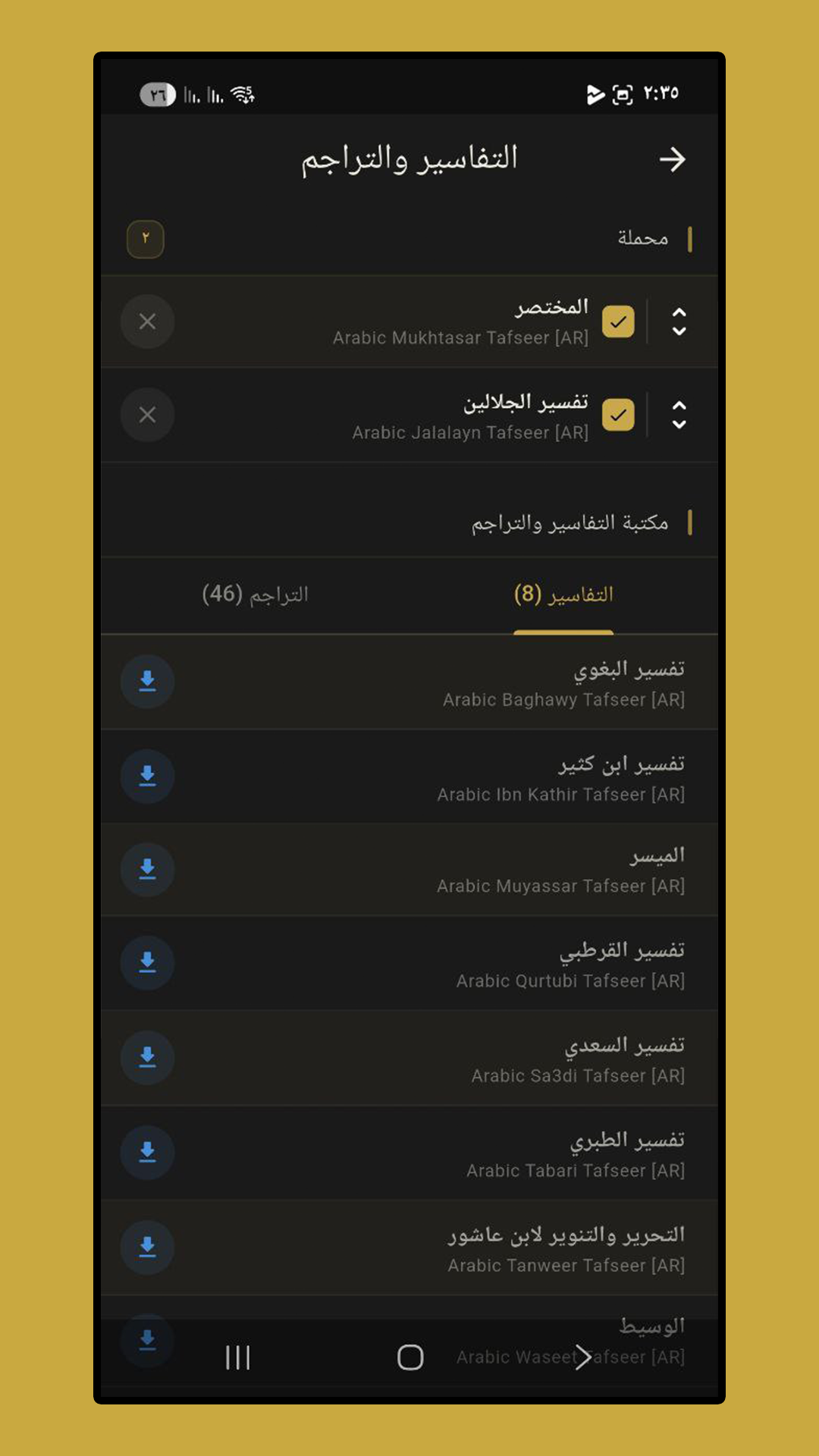 | ✔ | التفاسير والترجمات |